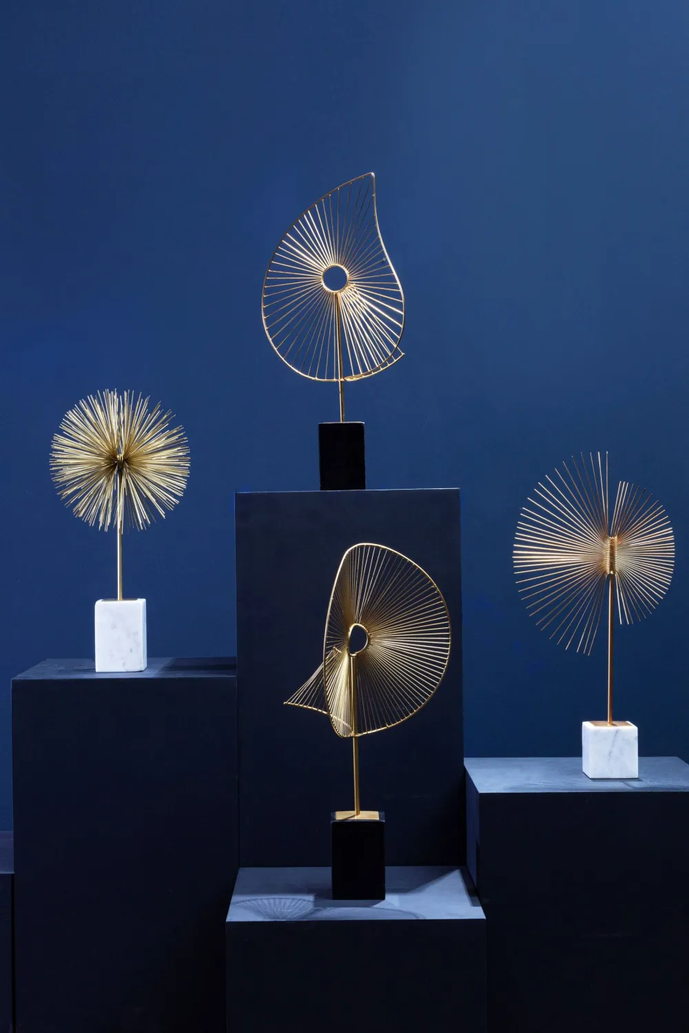 Overview: Outstanding in style this home decor sculpture is perfect as a centrepiece in the modern home. This sculpture is finished in wonderfully sleek gold and when viewed closely you will see the marks of handcraft and individualities of every piece.