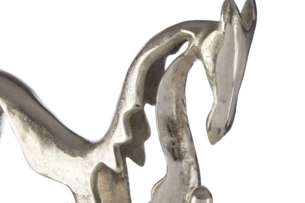 Overview: Outstanding in style this home decor statue is perfect as a centrepiece in the modern home. This statue is finished in wonderfully sleek silver rough nickel and when viewed closely you will see the marks of handcraft and individualities of every piece.