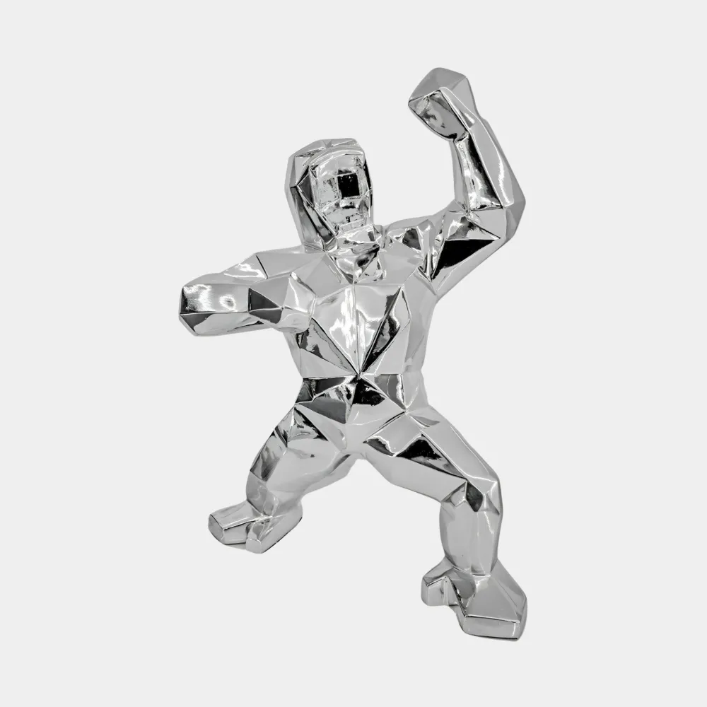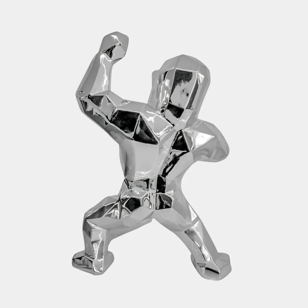 The Polygon Gorilla Sculpture is a bold and captivating piece that combines modern design with the raw essence of primal strength. Featuring a striking geometric aesthetic, this sculpture reimagines the powerful form of a gorilla through clean angular lines that create a contemporary and dynamic presence. Crafted with meticulous attention to detail, it showcases a muscular form and expressive features exuding energy and vitality in every angle.