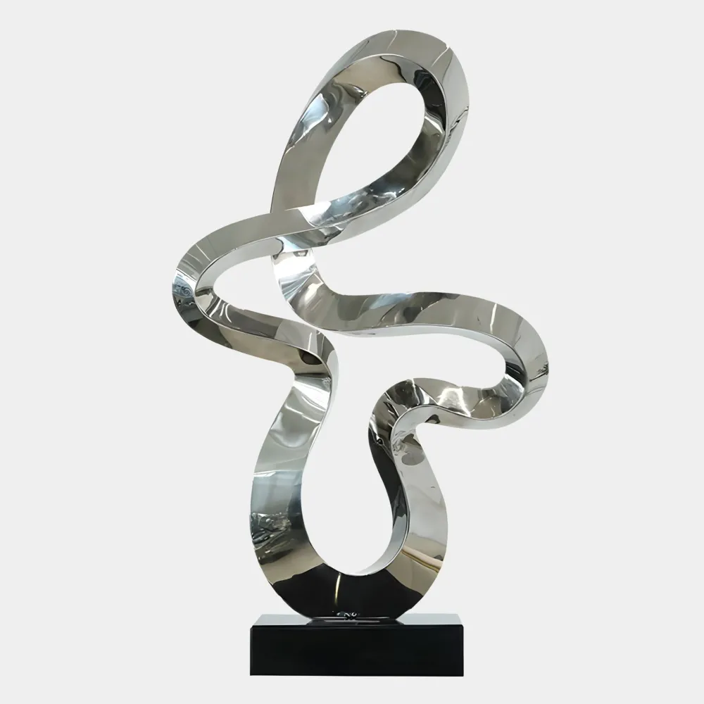 The Quantum Drift Sculpture is a striking expression of modern artistry designed to bring sophistication and movement to any space. Crafted from high-quality stainless steel, its fluid twisting form creates a captivating visual flow evoking a sense of continuous motion. The polished silver finish enhances its reflective qualities allowing it to interact dynamically with light and its surroundings. Its balanced proportions make it a versatile statement piece seamlessly fitting into both intimate interiors and expansive spaces.