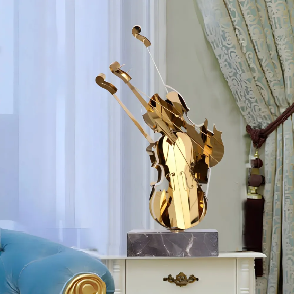 Designed for versatility contemporary this sculpture is equally suited for indoor and outdoor display. Its durable, weather-resistant construction ensures longevity making it a perfect addition to gardens, patios, courtyards and landscaped spaces where it complements natural surroundings. Indoors it enhances living areas, office lobbies or entryways seamlessly integrating with a variety of design styles from minimalist to luxurious. The reflective surfaces and bold artistic expression create a sense of movement and depth serving as both a decorative focal point and a conversation piece. Whether you’re an art collector or looking to elevate your space with a distinctive sculptural element the Violin Fusion Sculpture offers enduring sophistication blending musical inspiration with timeless elegance.