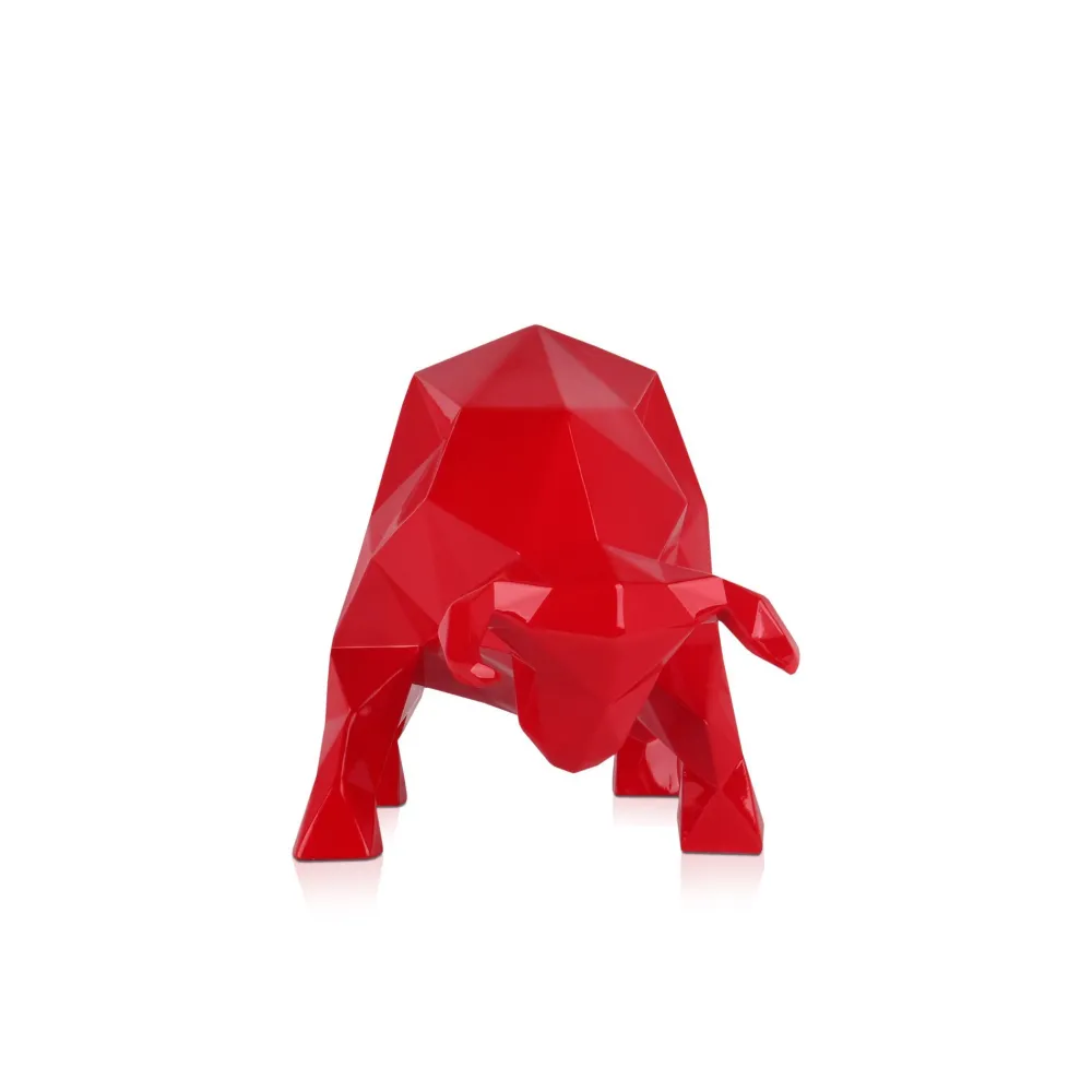 Polygon Bull 25cm Red Resin Indoor Sculpture