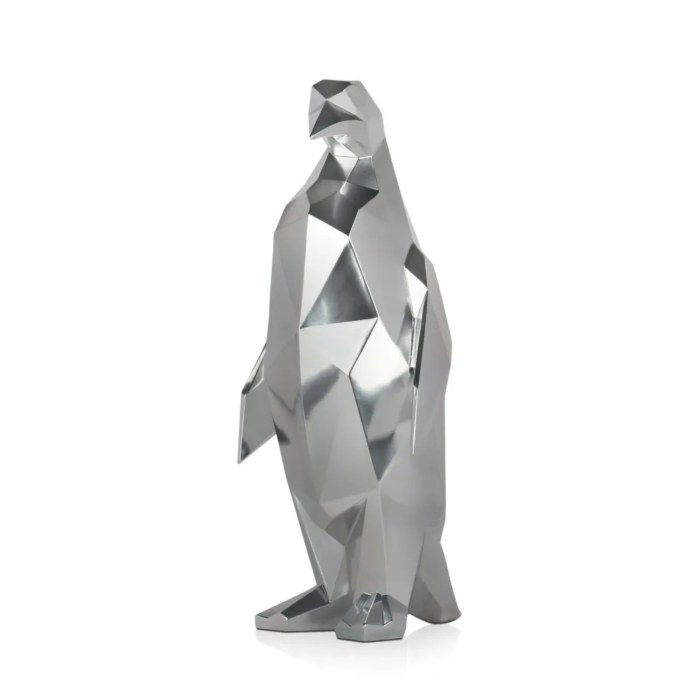 Polygon Penguin 50cm Silver Resin Indoor Sculpture