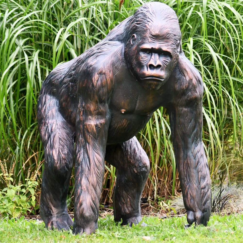 Gorilla Life-Size Bronze Metal Garden Statue