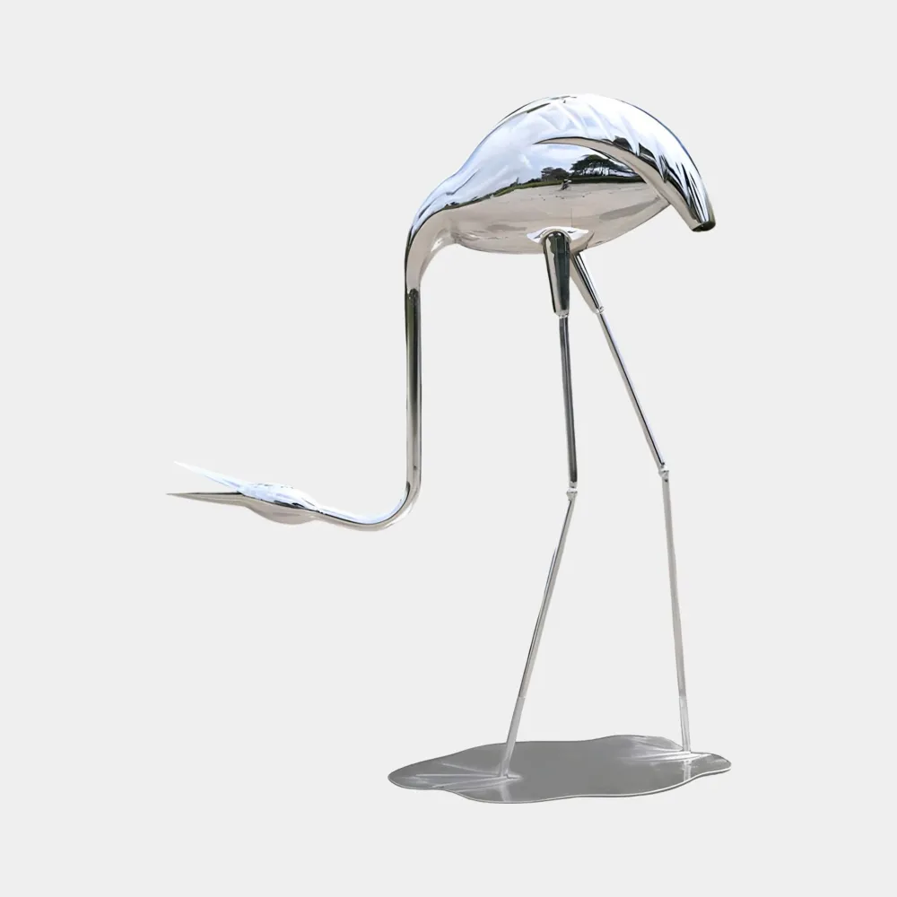Perfect for gardens, patios and landscaped areas, this sculpture adds sophistication and artistic flair wherever it’s placed. The reflective surfaces interact dynamically with natural light, enhancing the ambiance of your outdoor environment. Whether positioned near a pond to echo the crane’s natural habitat or displayed as a freestanding statement piece, it creates an atmosphere of refined beauty.