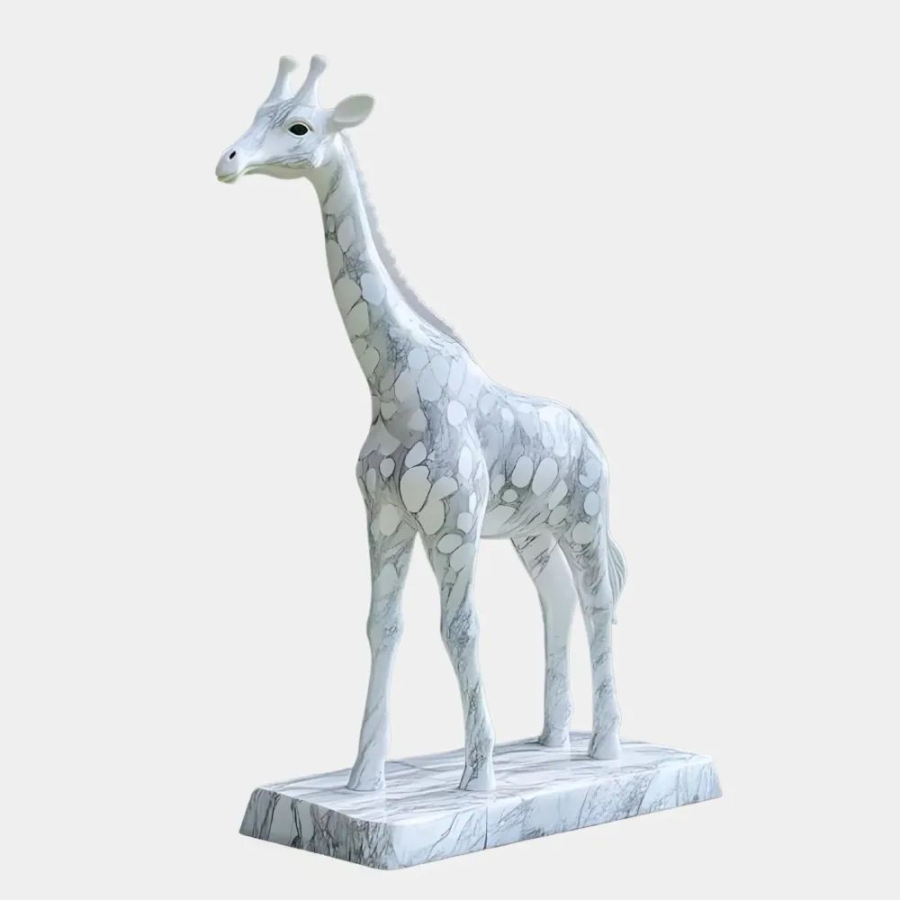 The Gigantic Giraffe Statue offers a stunning focal point for gardens, courtyards and open spaces. Handcrafted from premium white marble this statue masterfully captures the elegance of a giraffe with its elongated neck, lifelike features and strong graceful stance. The natural grey veining in the marble ensures each piece is truly unique adding depth and character to the design.