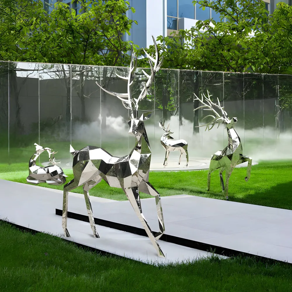 Introducing the Deer Geometric Garden Sculpture: a masterpiece that combines contemporary artistry with meticulous craftsmanship. This design transforms natural elegance into a striking geometric form, with angular facets that reflect light dynamically, creating mesmerising effects that shift with the environment. Constructed from premium stainless steel, its sleek polished finish adds a layer of sophistication making it an eye-catching addition to any space.
