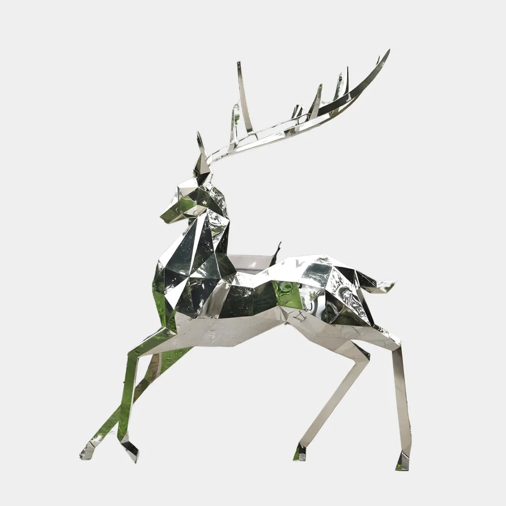Introducing the Deer Geometric Garden Sculpture: a masterpiece that combines contemporary artistry with meticulous craftsmanship. This design transforms natural elegance into a striking geometric form, with angular facets that reflect light dynamically, creating mesmerising effects that shift with the environment. Constructed from premium stainless steel, its sleek chrome finish adds a layer of sophistication making it an eye-catching addition to any space.