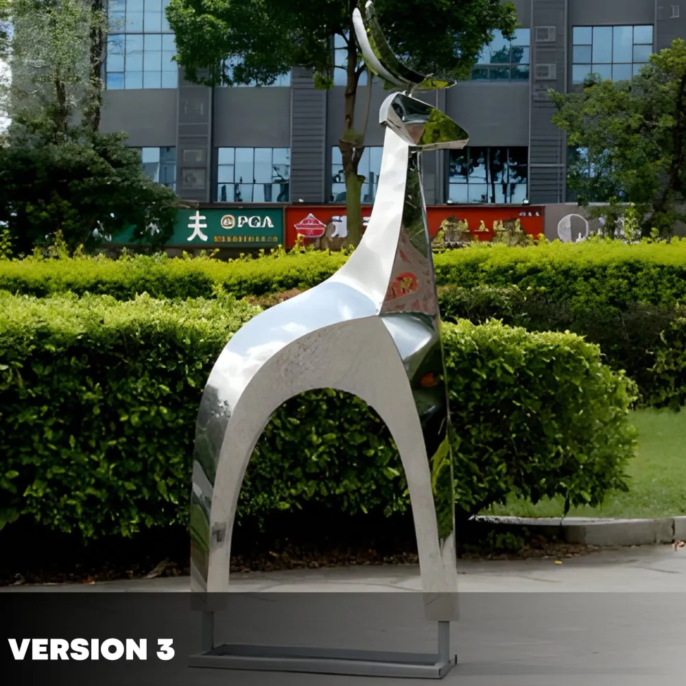 This modern Dynamic Deer Sculpture is a striking blend of elegance and contemporary design, capturing the essence of a deer’s grace in fluid minimalist form. Meticulously crafted from premium stainless steel, the sculpture features flowing lines that mirror the natural movements of a deer in the wild. Its polished surface reflects light beautifully, creating an ever-changing interplay of brightness and shadow that draws attention from every angle. The abstract shape invites individual interpretation, making it a compelling artistic centerpiece that suits a variety of spaces.
